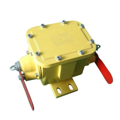當(dāng)膠帶運(yùn)輸現(xiàn)場發(fā)生緊急事故時,可拉動系在拉繩開關(guān)吊耳上的鋼絲繩,使機(jī)內(nèi)的滑塊與開關(guān)的作用,發(fā)出停機(jī)信號。同時紅色手柄彈起,與開關(guān)成90°。示意監(jiān)控人員準(zhǔn)確判斷。